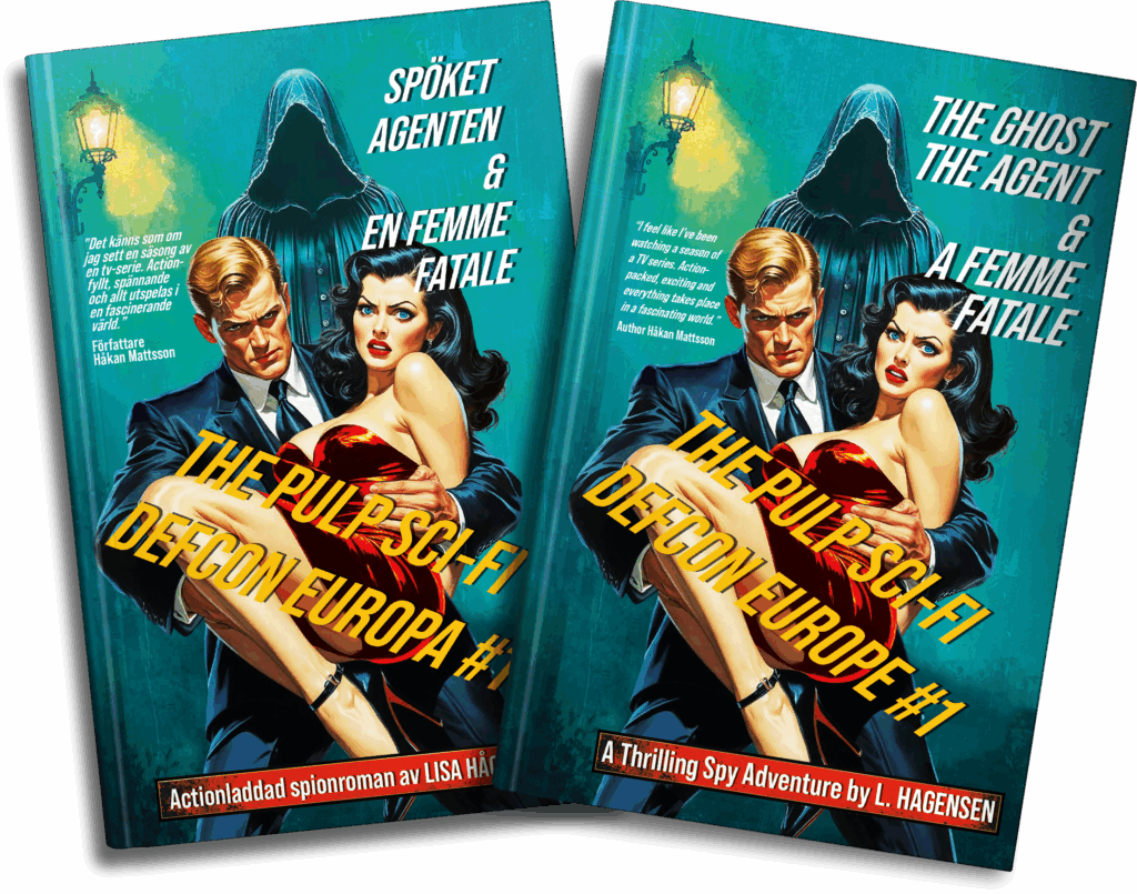 Defcon Europe #1 – Le Fantôme, l’Agent et la Femme Fatale est un roman d’espionnage rythmé et plein d’action, qui se déroule dans une Europe futuriste à l’ancienne (disponible en suédois et en anglais).