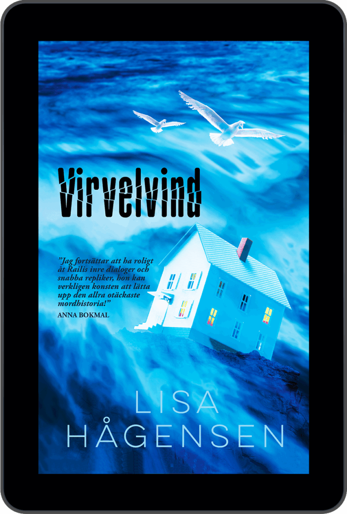 I Virvelvind hamnar Raili och Ylva mitt i pusseldeckarens makabra drama. De är fast på en stormdrabbad bohuslänsk ö med ett lik, ett värdpar, två adjunkter och ett gäng bibliotekarier – och en av dem är en mördare.